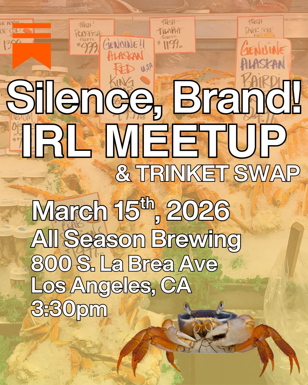 🦀 we will be hosting our SECOND (🤯) Silence, Brand! IRL in LA on 3/15